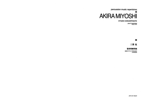 立ち読み 通常商品はこちら 管楽器/打楽器 打楽器 打楽器/作曲家作品 近日発売 デジタル版 三善 晃:協奏的練習曲 2台のマリンバのための [1979年改訂版] JPY: 2,240 yen 発売開始日:2026年3月15日 ページ数 A4横/30頁 コード 55025300 演奏時間 6分 楽器編成 mar(2) 1977年7月18日、藤井 むつ子、草刈 とも子により初演。1980年11月13日改訂初演。 演奏用浄書譜と、自筆譜を収載。 演奏所要時間:約6分30秒 ■決済方法は、クレジットカード決済・代金引換・ペイパル(Paypal)がご利用いただけます。■領収書についてはこちらから。