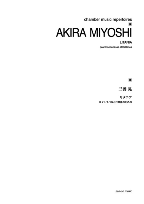 立ち読み 通常商品はこちら アンサンブル/室内楽 その他アンサンブル 近日発売 デジタル版 三善晃:コントラバスと打楽器のための「リタニア」 JPY: 1,200 yen 発売開始日:2026年3月15日 ページ数 A4/9頁 コード 59021300 演奏時間 8分 楽器編成 cb, perc N響コントラバス奏者・田中雅彦の求めに応じて書かれた作品で、コントラバスと打楽器という楽器の特性をフルに発揮する素晴らしい作品です。 ■決済方法は、クレジットカード決済・代金引換・ペイパル(Paypal)がご利用いただけます。■領収書についてはこちらから。 最近チェックした商品 管楽器/打楽器 デジタル版 三善 晃:クラリネットのための 螺旋状の視界
