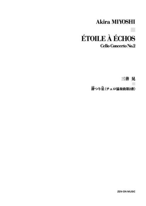 サントリーホール10周年記念委嘱作品。1996年10月28日、堤剛のチェロ独奏、若杉弘の指揮、NHK交響楽団により初演。演奏所要時間:約13分。パート譜はレンタル扱い。CD「三善晃の世界」(CMCD‐99036‐8)、「三善晃 交響四部作」(VZCC1021‐2)に収録。